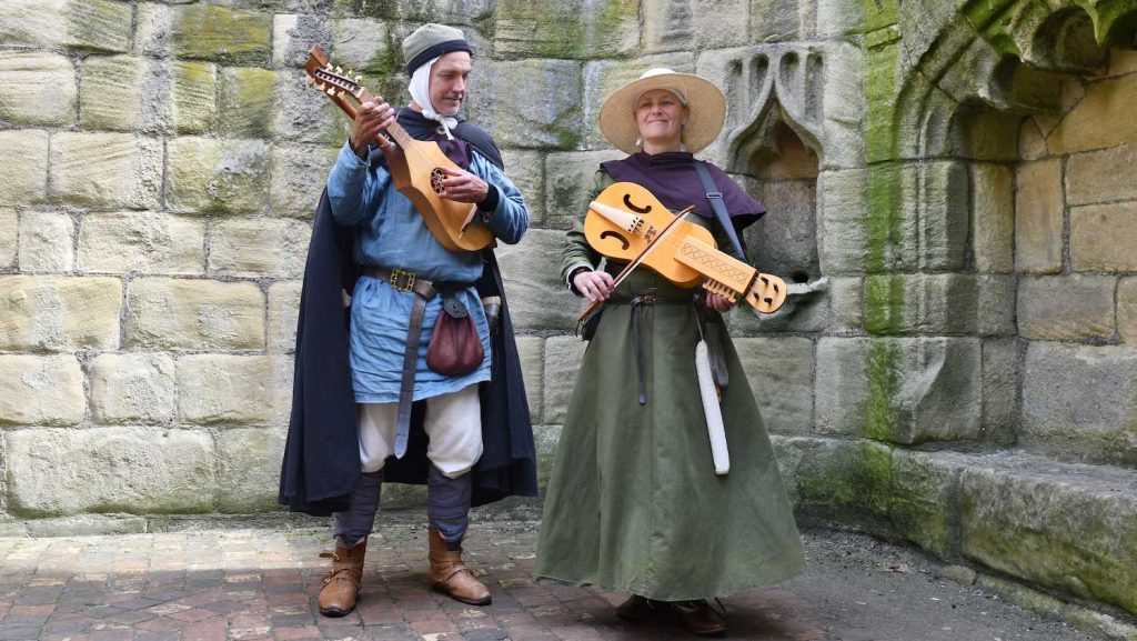 Bagpipes, horns, buisine, flutes, lyres, harpa, keyed-fiddle, whistles… we have no idea at any one point how many there are in the basket! We sing and we dance!